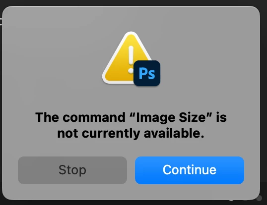 When using a batch with a created action I get a pop-up "The command Image size is currently not available"