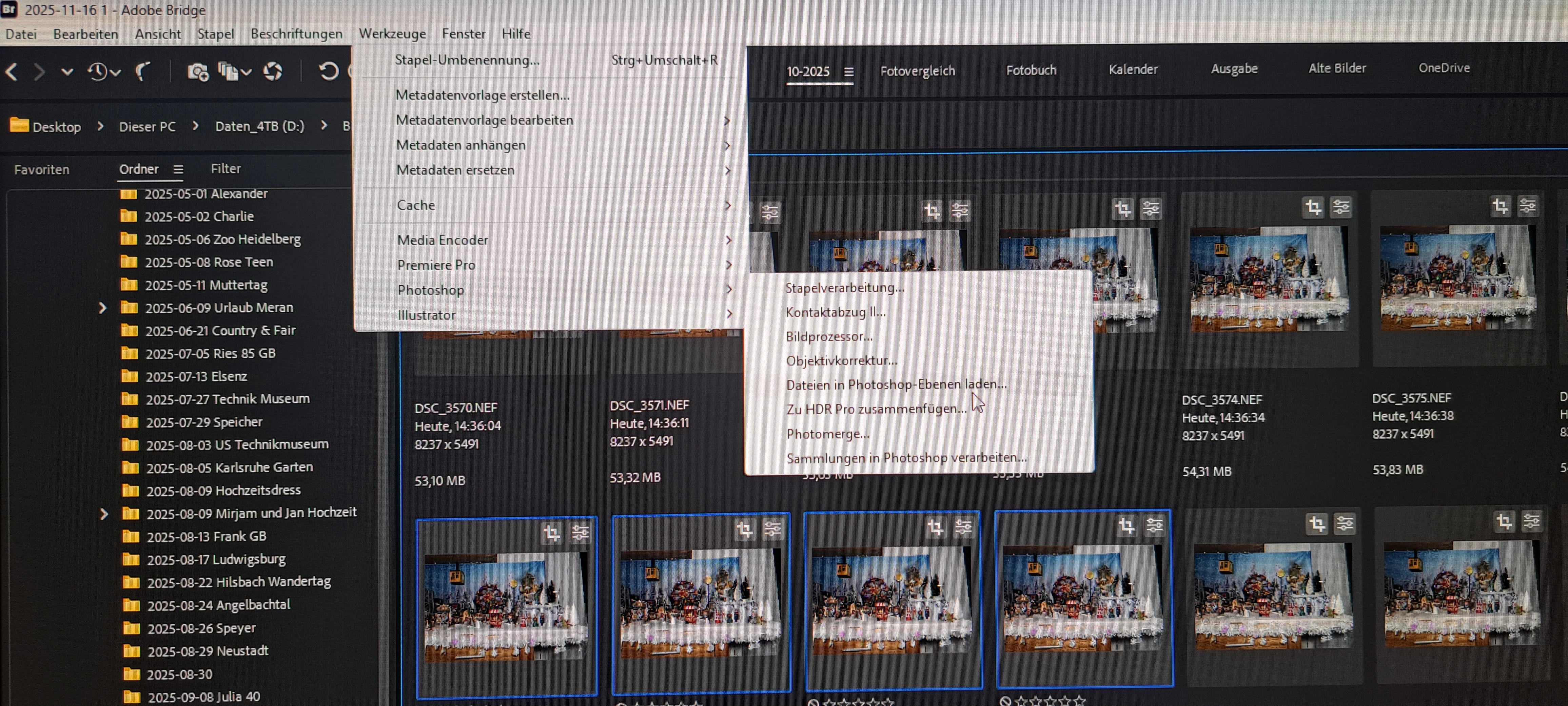 Hallo, wenn ich aus Bridge mehrere Bilder in Photoshop Ebenen lade , ist das letzte