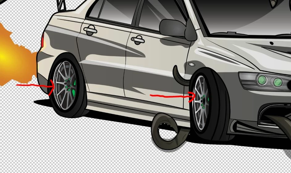 If you look closely at the shadows of the tires, you'll see what I mean.