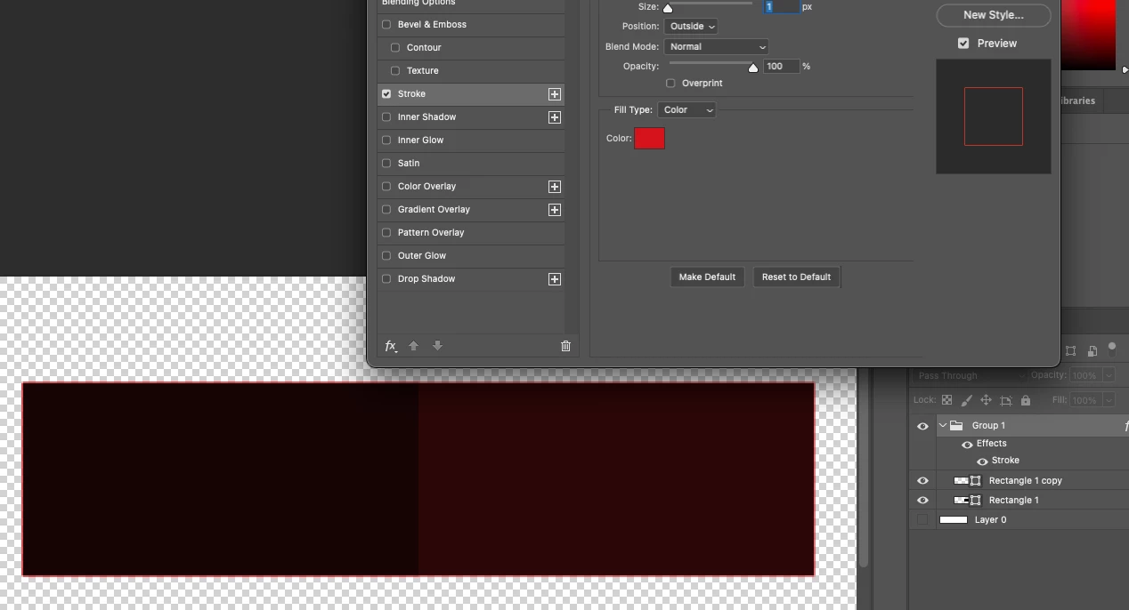 As seen here, while it is applying the 1px outline, it's also adding this red tint inside the 2 rectangles for some reason, when it should clearly just be applying the 1px outline