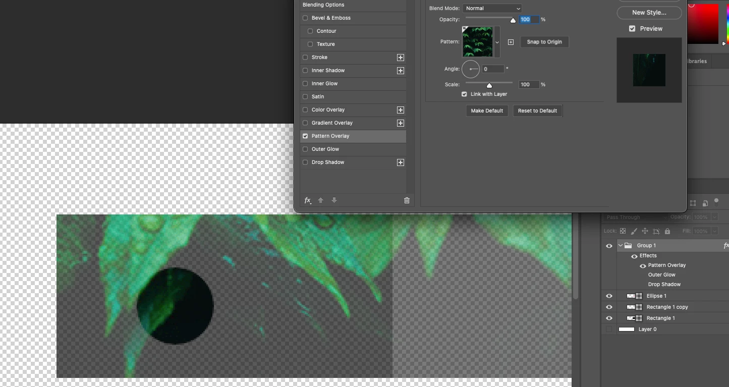 In this, I added a circle with its opacity set to 100% inside the same group. When I apply effects, it acts like it's applying the effects to every single layer inside the group instead of to the group itself.