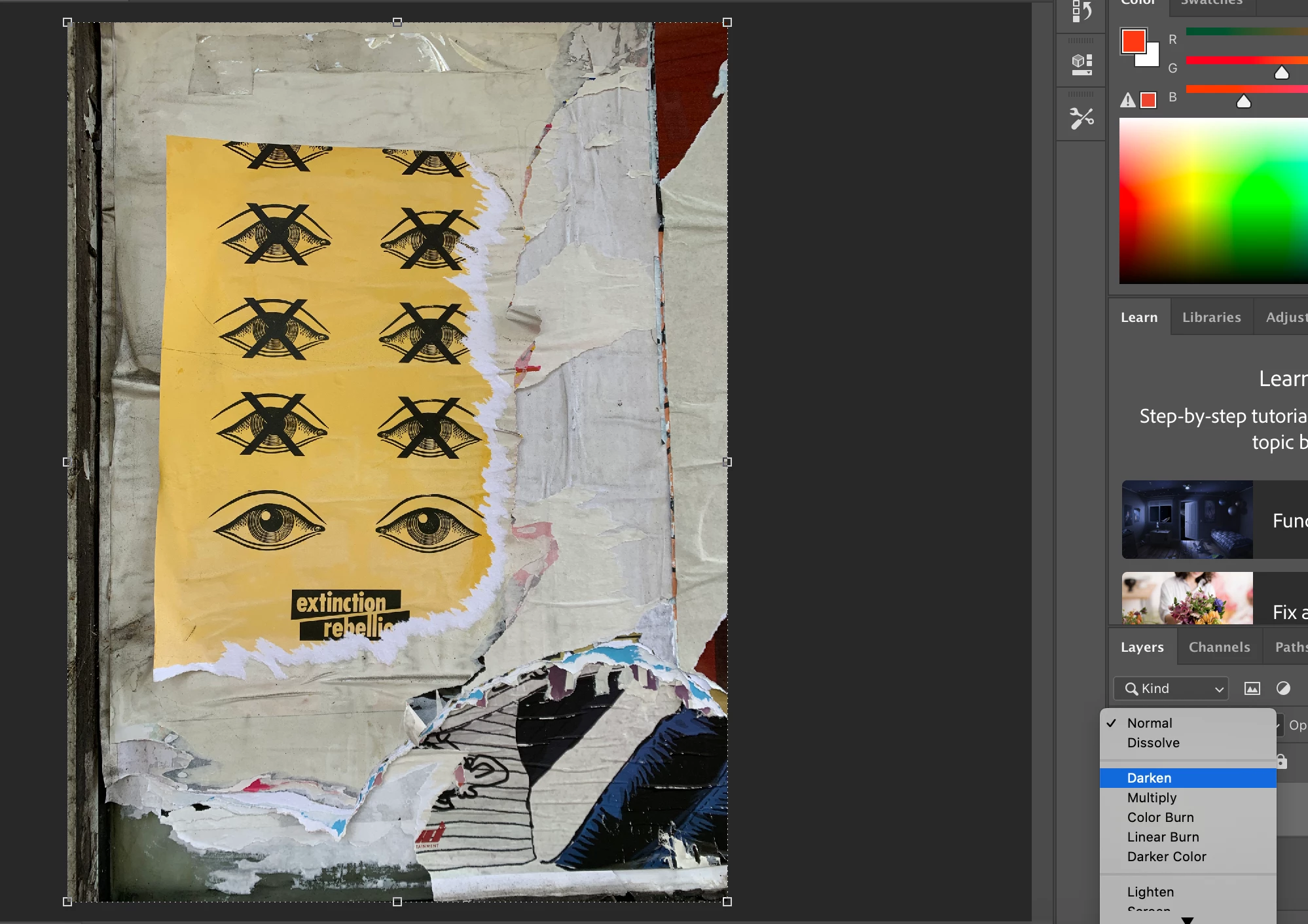 When I try to use blending mode on photoshop this loading icon appears and nothing changes in my image. What do I do to fix this?