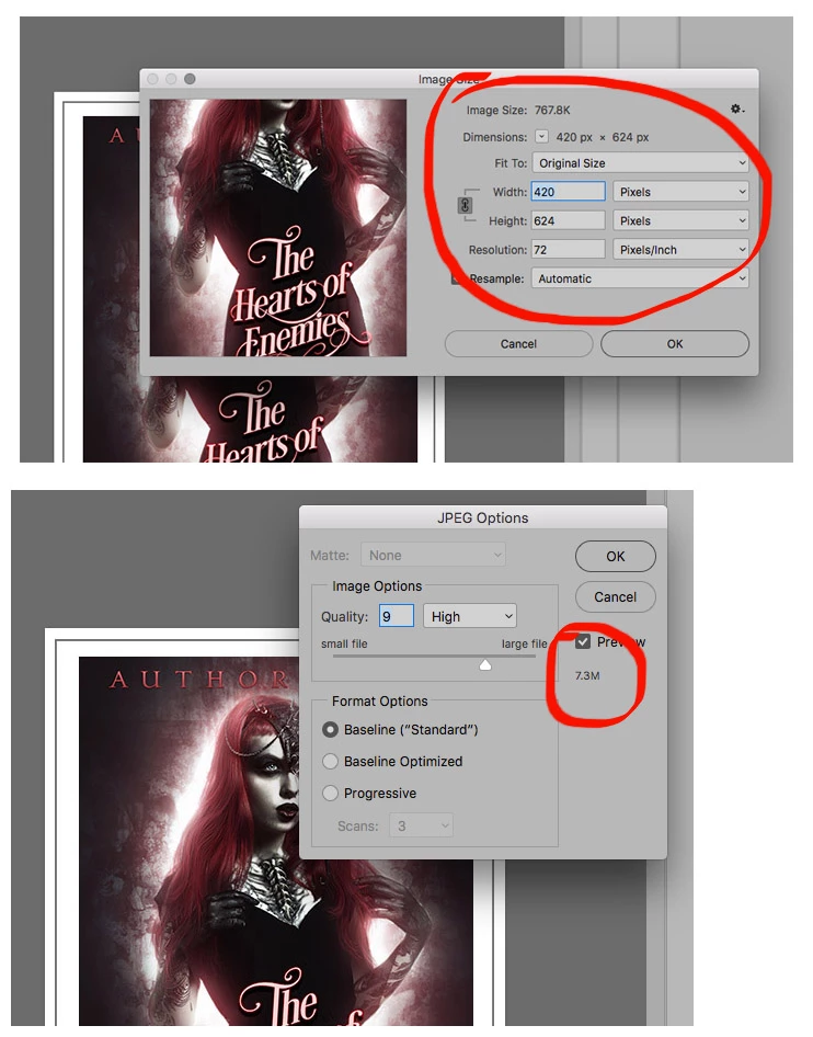 I'm creating jpgs for my web portfolio. I've been using this template for months. Normally the final jpg is around 300k. Since Oct 30th, they are 6-7MB! I've attached a screen shot of the image-size window which shows info for the correct size. When I save as a jpg immediately following the image size, it says it is 7.3MB. The file is a flatten (though that shouldn't matter when exporting to jpg). The same file size bloat happens with pngs.