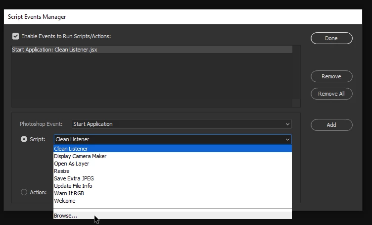 Hi @extracampine, basically, write or copy your script to Notepad or Textpad and save the file with the .js extension. Upload that file to Photoshop with the Script Events Manager found under the File menu. Then run that script as needed. I hope that's helpful!