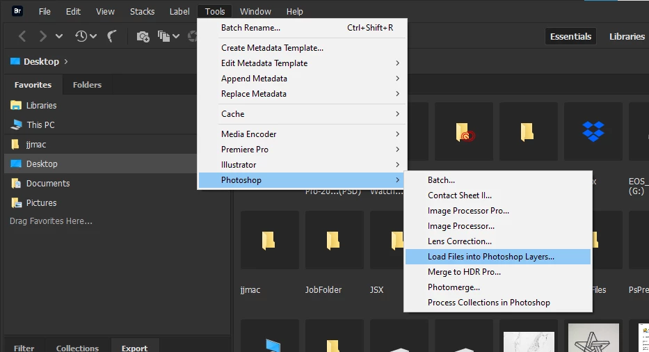 Bridge Automate "Load Files Into Photoshop Layers" For Stacks Into Photoshop Action