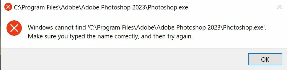 Photoshop is installed into the default folder C:\Program Files\Adobe\Adobe Photoshop 2024 and the Photoshop.exe file is there.