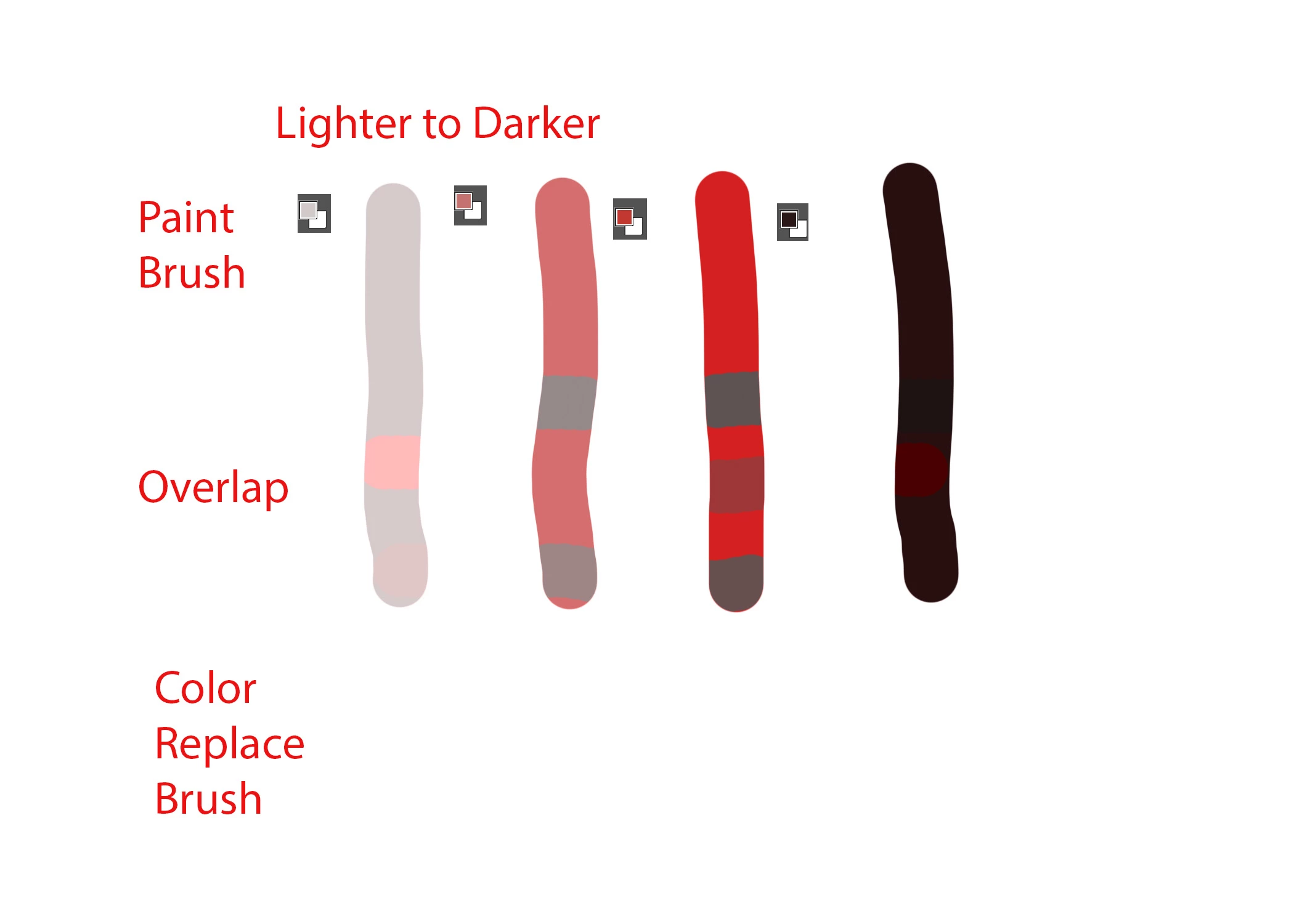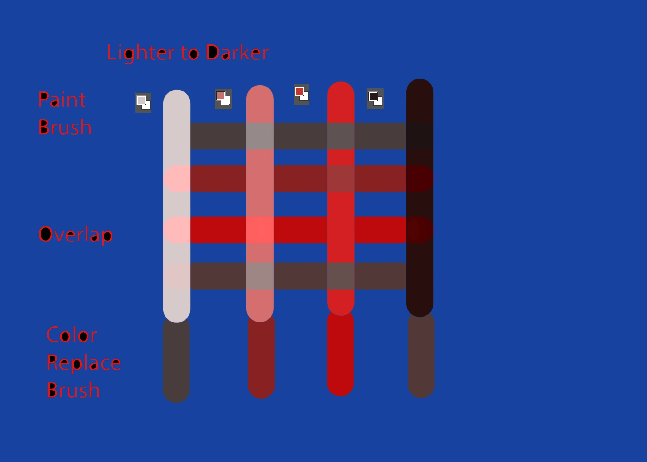 On a White or Black Background nothing is painted. If I use a lighter shade than a color I am overlaying it comes out gray or a darker shade of the color I am using. If I use a dark shade over a lighter shade I get grey or a lighter shade of the color I am using. The only time it matches is when you replace the same color with the same color.