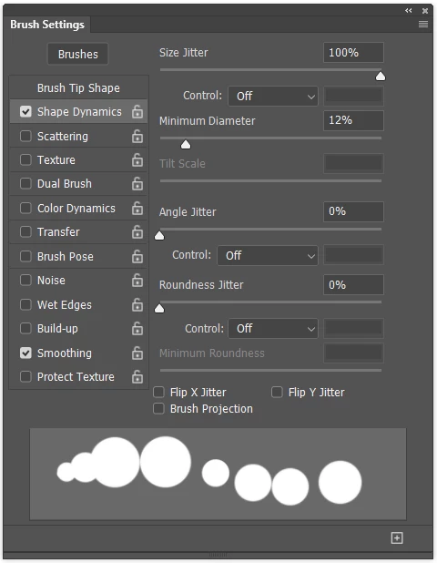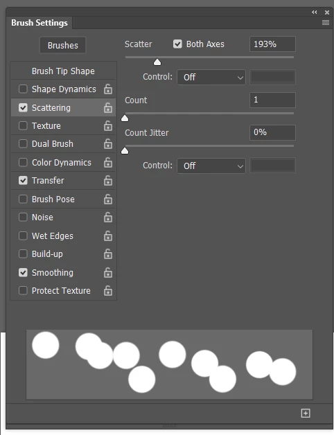So with Jitter set to 100% each stamp of the brush can be anything from one pixel to the size of the preset.