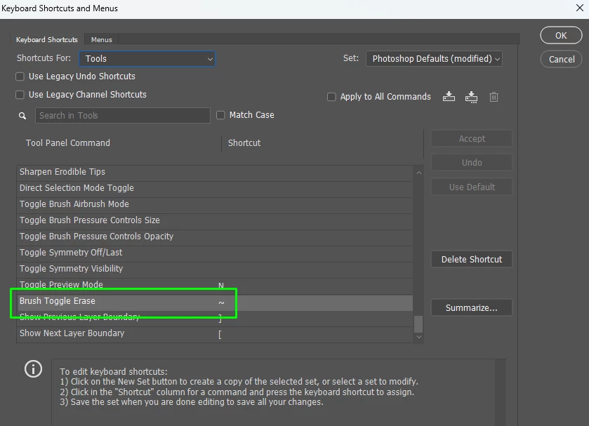 Brush Toggle Erase (~) no longer working