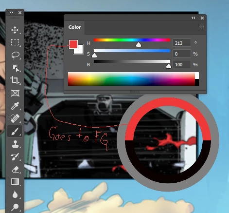 This doesnt work in versions 22.0 or newer. Whenever I hold ALT when using the brush tool to pick a color, the color ALWAYS goes to the FOREGRUND swatch, doesnt matter I have the Background swatch selected in the color windows.