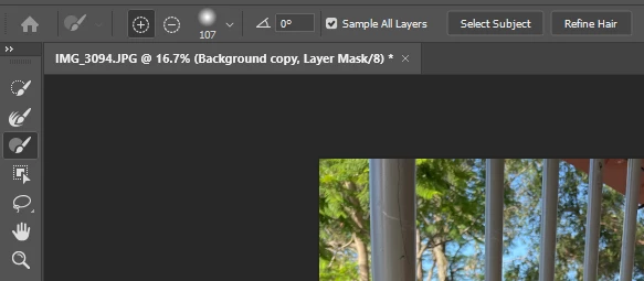 I am pulling my hair out trying to use the Brush tool on the Select and Mask Screen which is clearly not working and would love to know if there is something I am doing wrong.