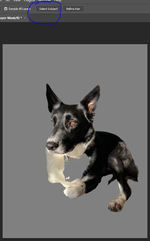 7. I click "Select Subject" and the expect area of the image is masked correctly as expected.