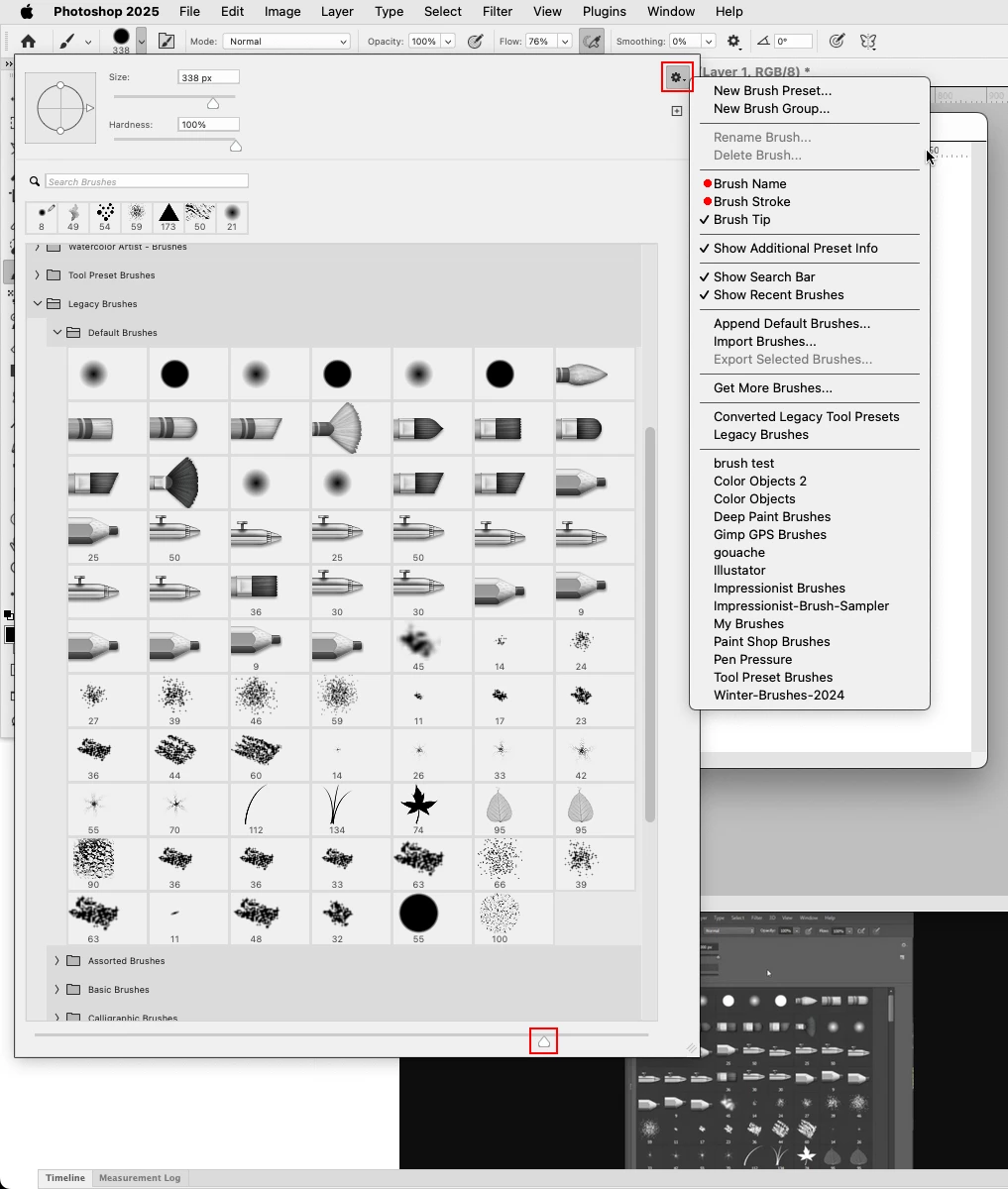 why is there no option to view photoshop brushes as before in version 2025. Grouping of new brushes causes problems in terms of usage. how can i fix it?