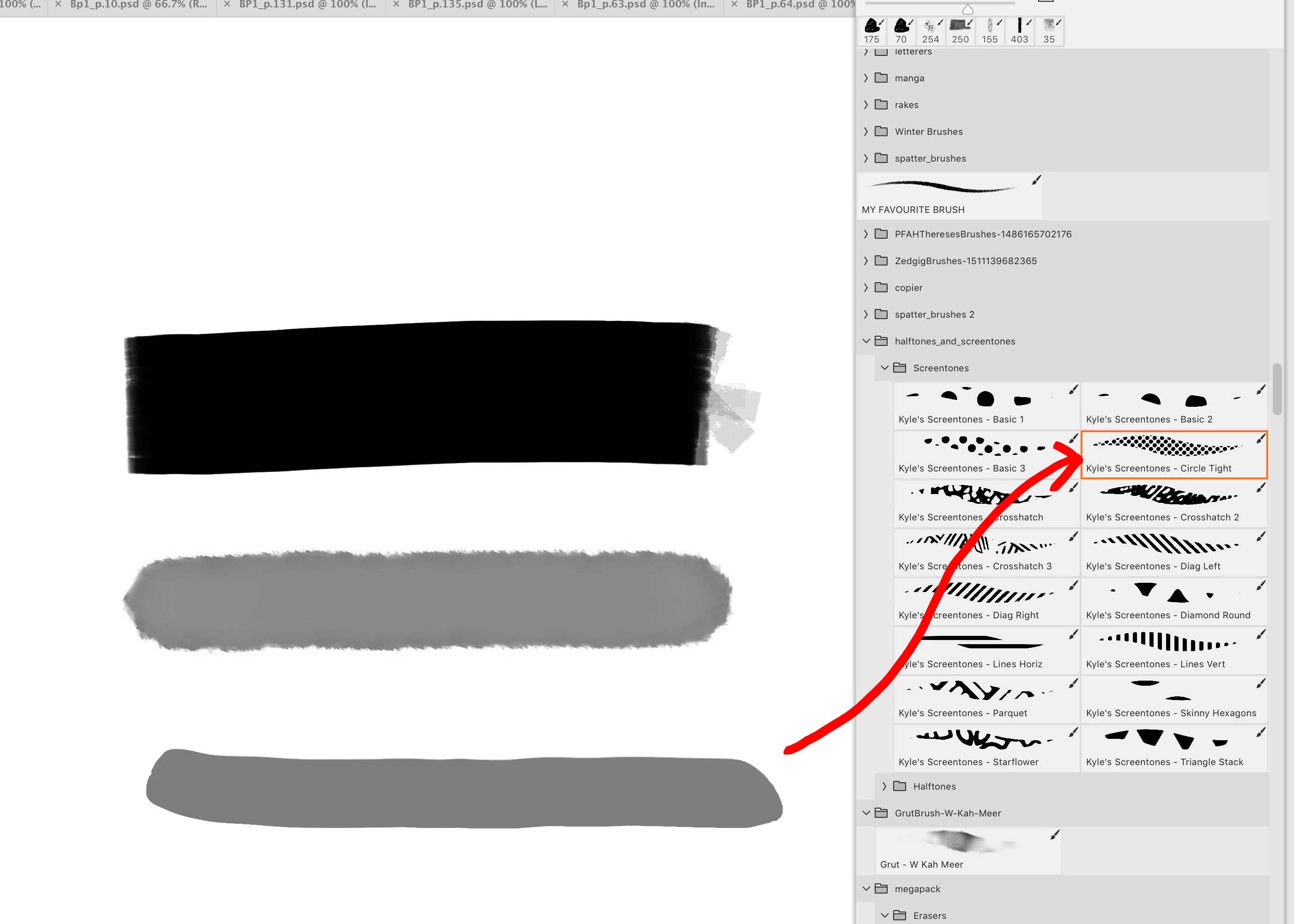 Brushes aren't behaving as they should e.g. screentone pens coming out in a block