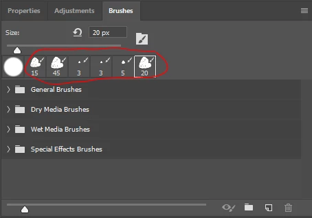 I'm wondering if there's any chance of recovering the brushes - I know that I'm supposed to save them to the brush presets folder (which they are currently not in) - because for some reason I'm still able to use the lost brushes in my brush history (circled in red):