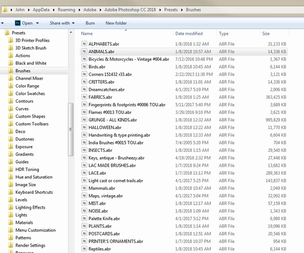 then going into the Adobe folder where the Brush Presets are stored--