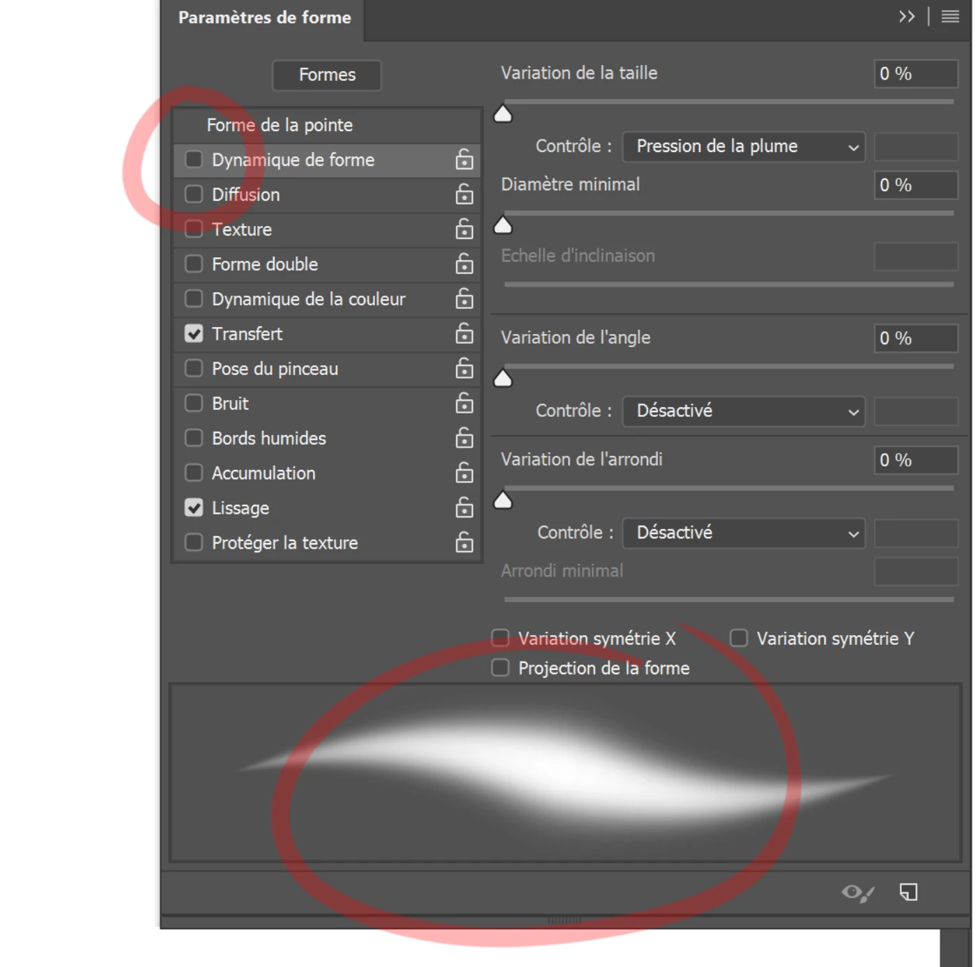 J'ai un problème avec l'outils pinceau: imposible de désactiver la dynamique de forme dans les parramètres de forme quand ma tablette est branché.