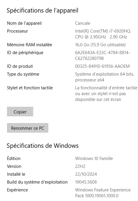 * config du PC : en pièce jointe