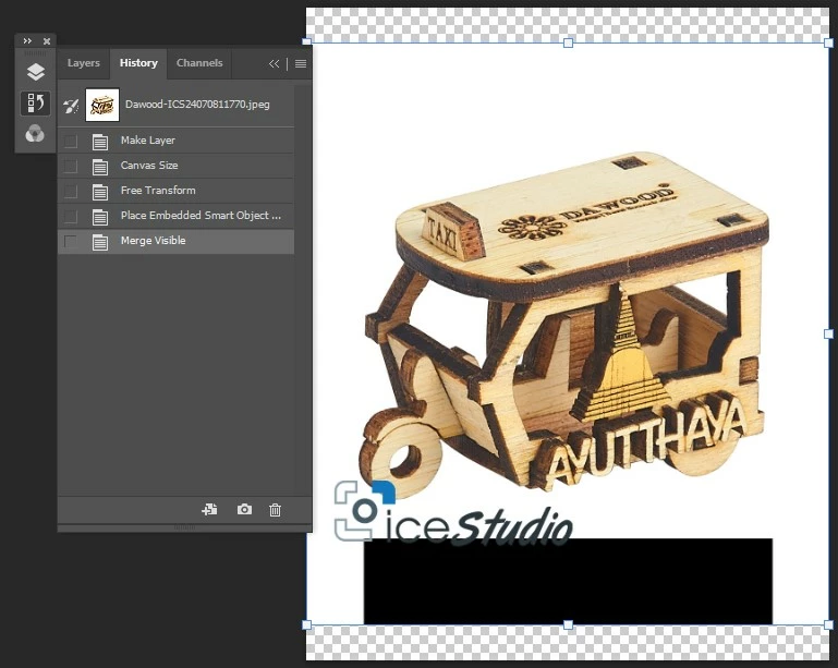 A black bar appears on the image—either after merging the embedded layer or in the final JPG export.