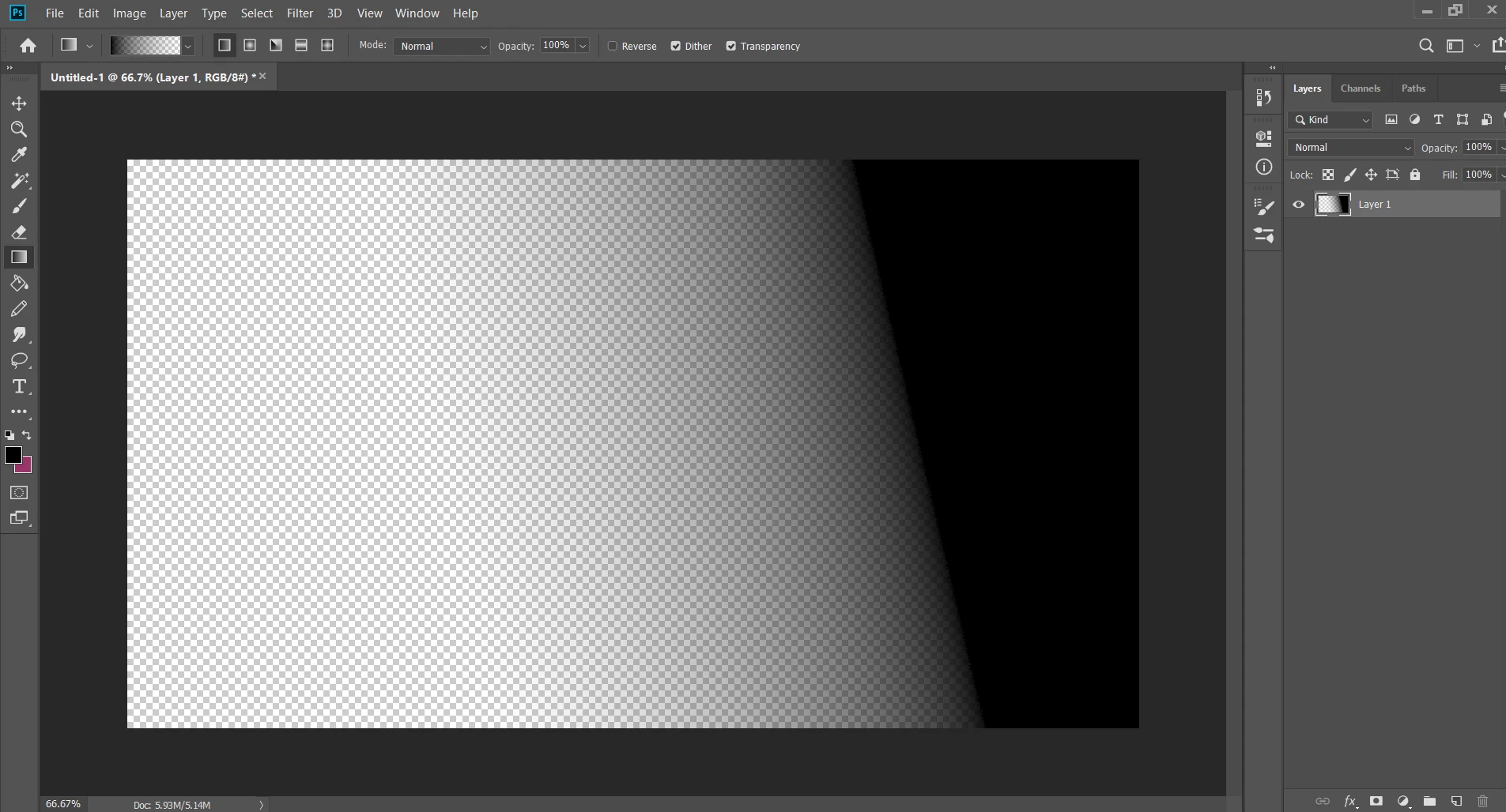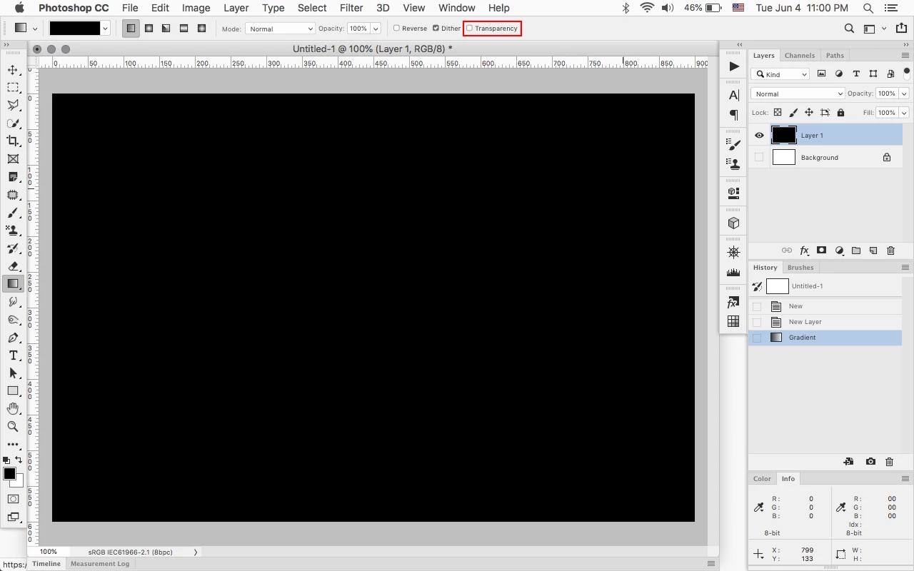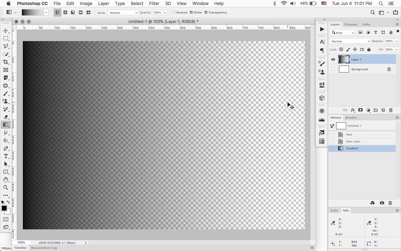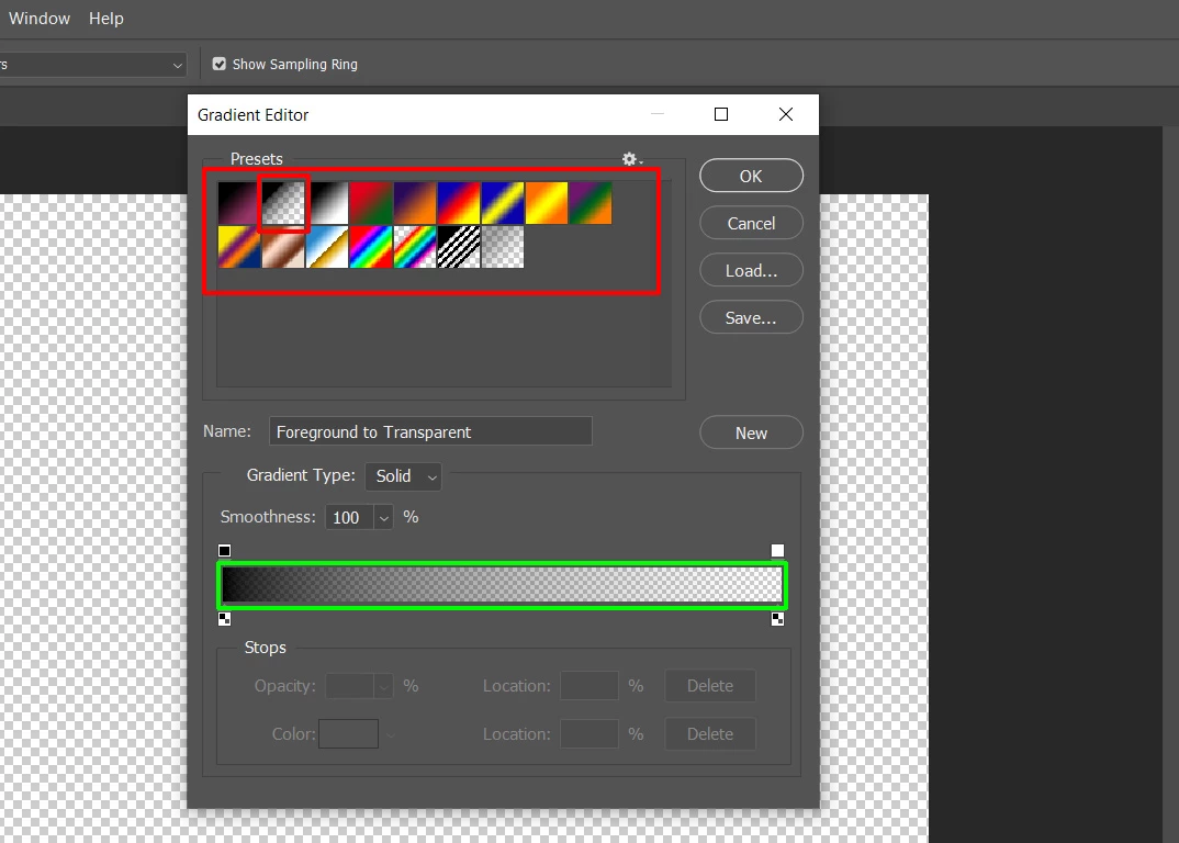 I was having some issues earlier with the linear gradient tool adding a large chunk of solid color before the gradient, instead of being a smooth transition from opacity so I reset my tools and restarted Photoshop. After restarting the problem got even worse and now just fills in a solid chunk with no gradient whatsoever when trying to use transparent tools. !
