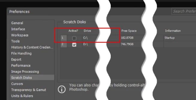 Scrath disk should be configured to the fastest drive(s) (normally this are SSDs) which has enough free disk space.