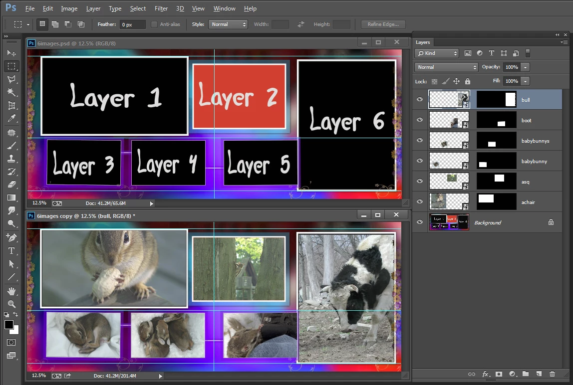 2. Photo collage templates must have a Photoshop background layer. The contents of this layer can be anything.