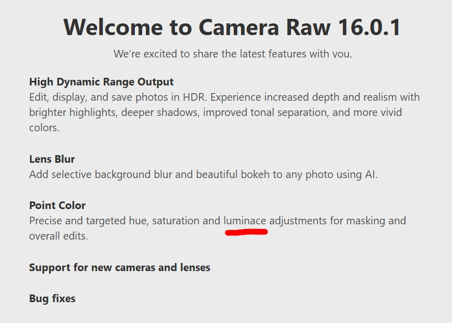 Camera Raw 16.0.1 - Misspelled word and broken link in splash screen