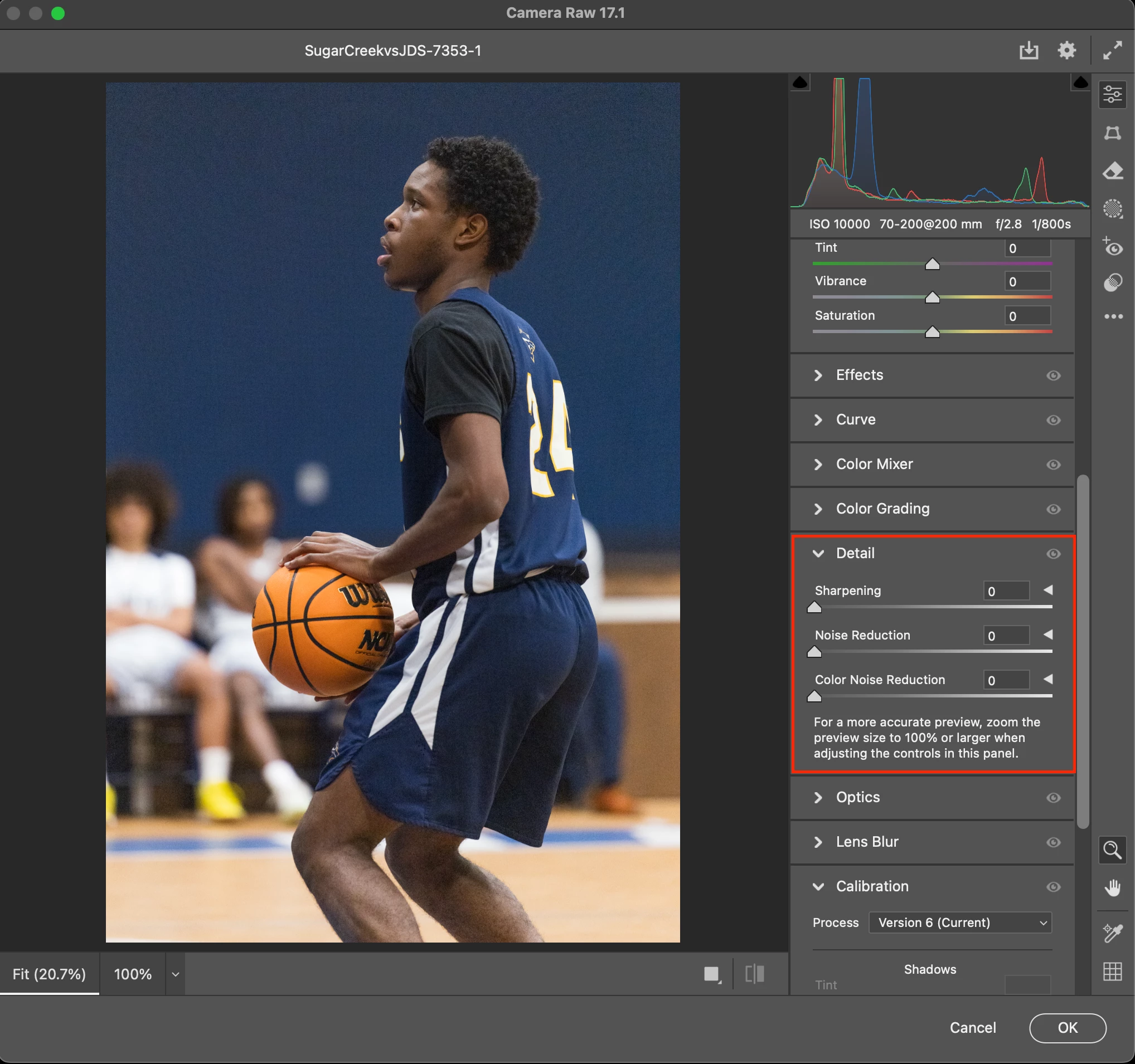 Camera Raw 17.0 Denoise does not have the denoise option under Detail.