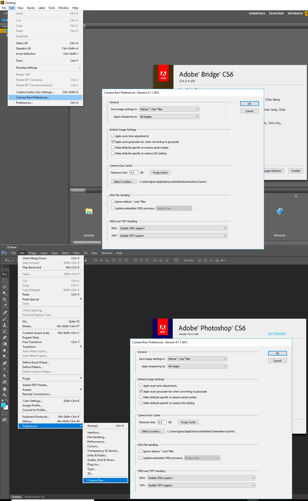 camera raw not enable / Bridge's Parent Application Is Not Active: CS6