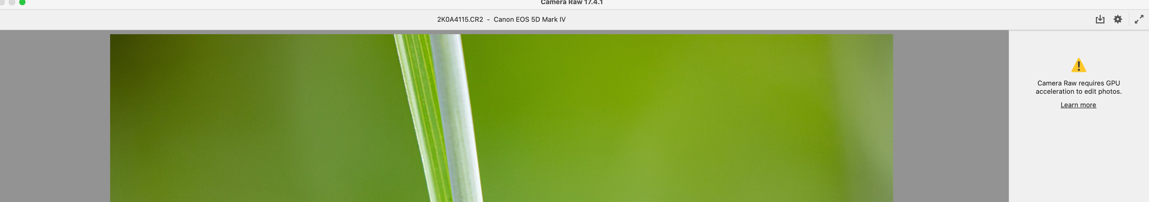 This will open the correct directory where you should see the GPU2 or Gpu3 file. Delete it and re-open Adobe Camera Raw. The GPU error dialog will be gone and ACR should be back to normal.