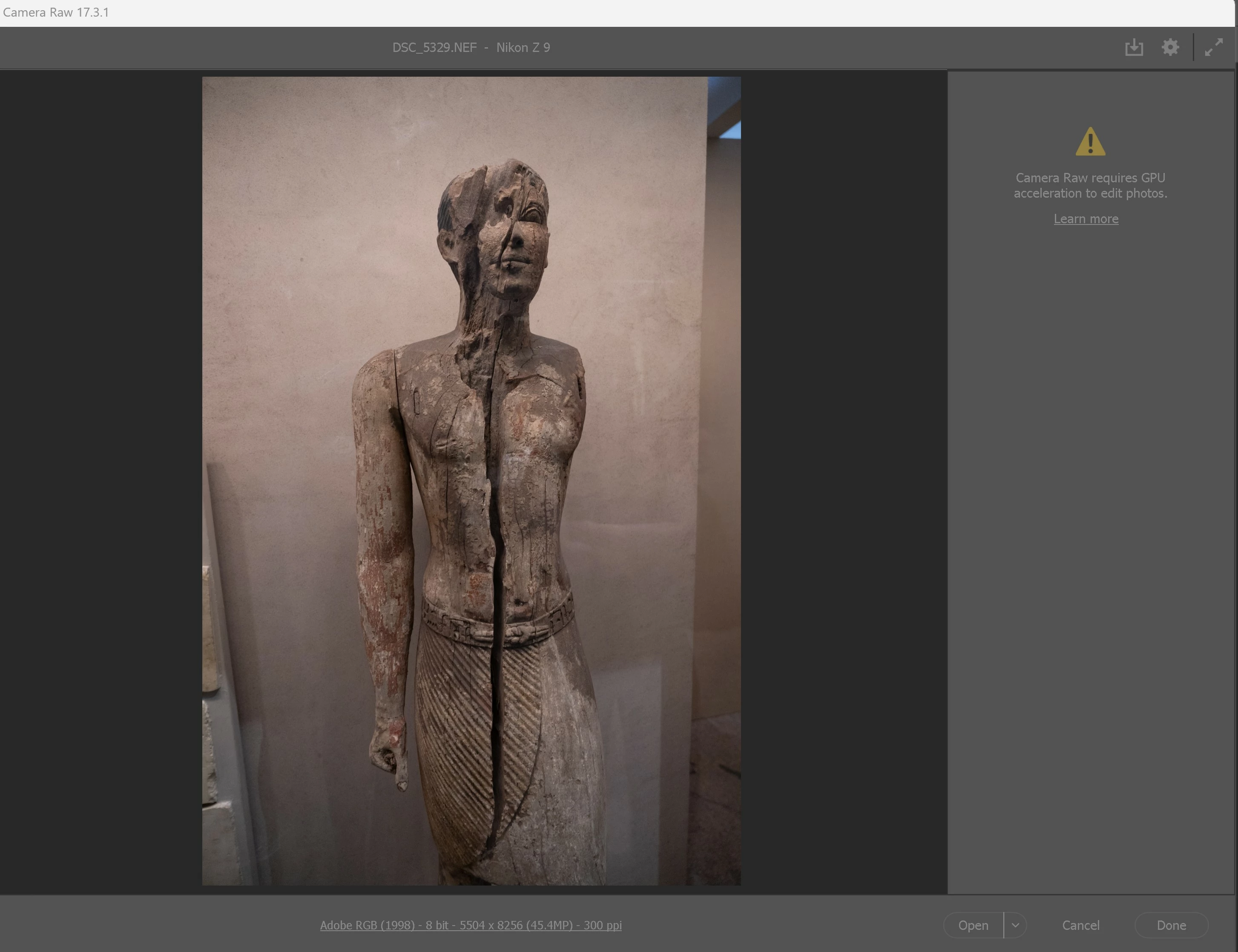 This afternoon I get 'Camera Raw requires GPU acceleration to edit photos.'