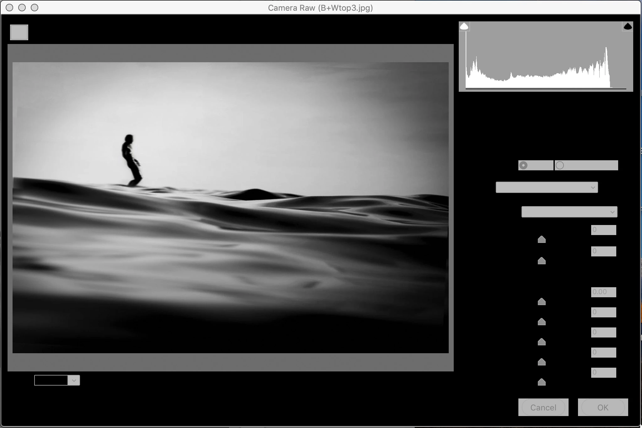 - Click on Filter > Camera Raw (when an image is loaded).