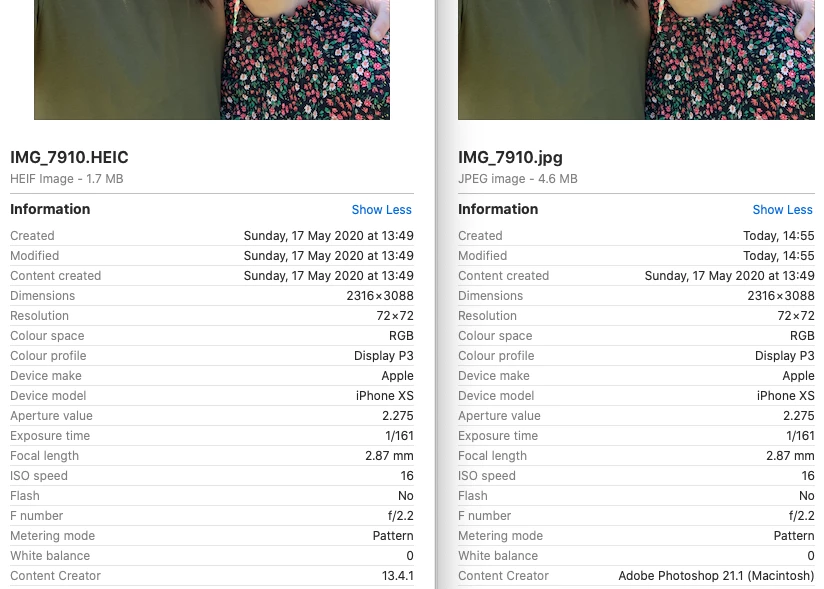 On a test run I see that the original HEIC photo's EXIF data (left hand side on my screen snap) states the Created, Modified and Content Created info as the date and time when the photo was taken but in converting it to JPG (right hand side of my screen snap) the Created and Modified data gets changed to today's (or the day I'm converting it) date and time, it's not the end of the world but I just want to check that once converted the EXIF data on the JPG will definitely keep the date and time the original photo was actually taken, and as much of the original EXIF data as possible?