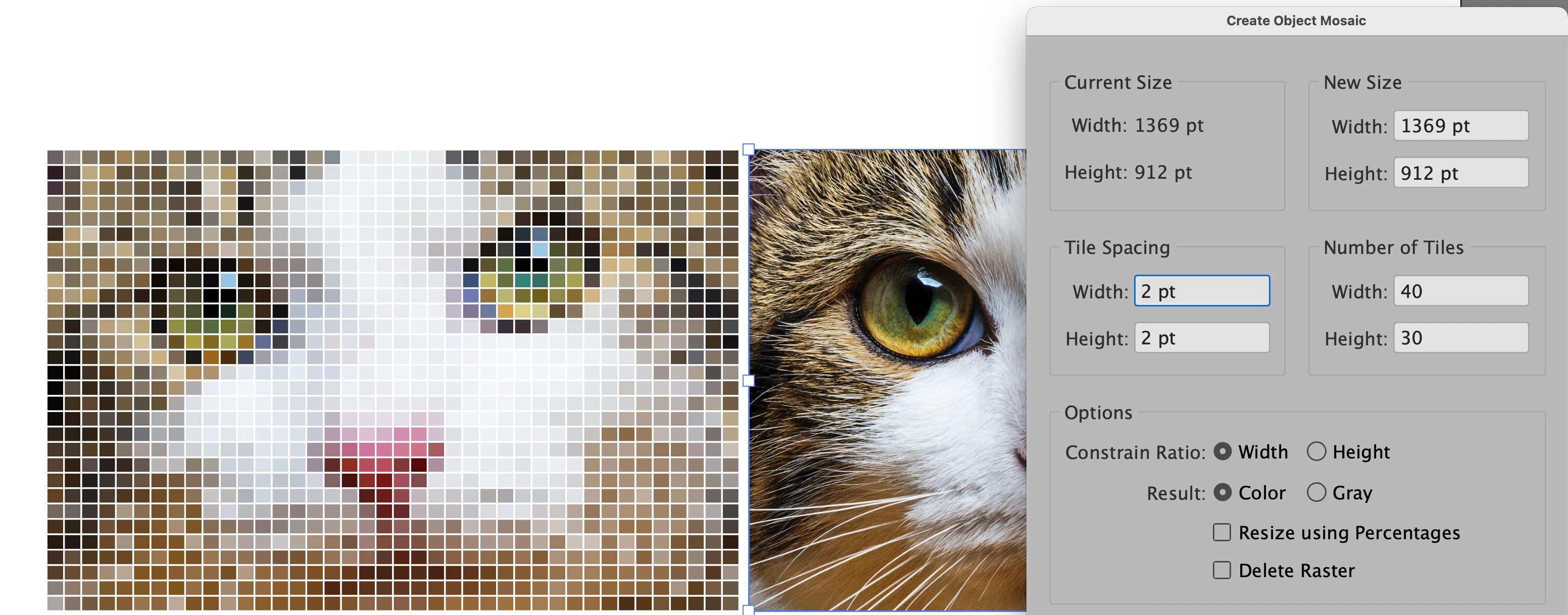 I want to put an illustrated vector image into Photoshop and pixelate it so each individual pixel is 10mm x 10mm. I then want to put printable gridlines over the top of which I have found a youtube tutorial to then print out in sections and then lay actual mosaic tiles over the top creating a pixel mosaic. please see the image attached for an example of what it looks like to give you a better understanding of what I'm trying to achieve.
