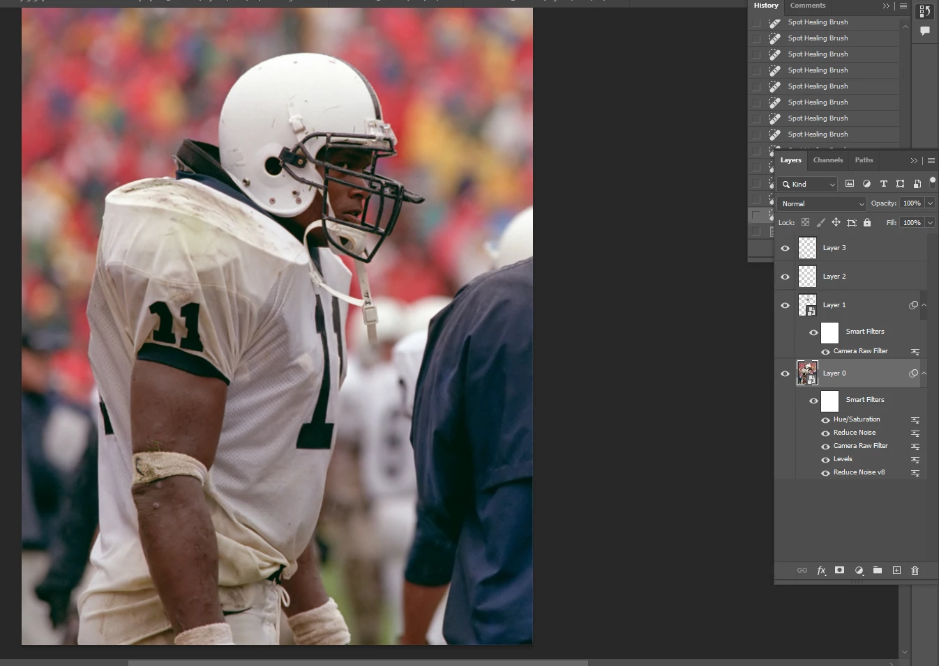 First image is the adjusted image, second is what it looks like after adjusting the Hue and Saturation filter.