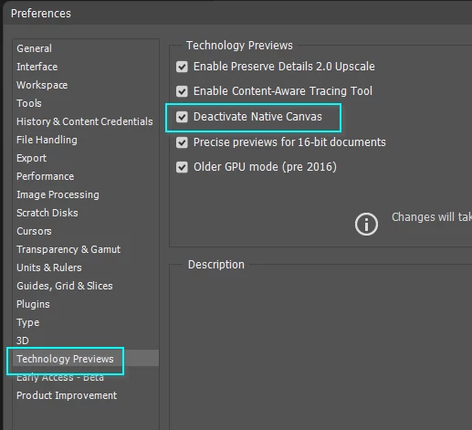 What it says on the title; I'm currently running the latest version of Photoshop and recently started experiencing lag issues after updating my graphics processors. I heard that changing the drawing mode to "advanced" might help, but when I open the advanced GPU settings, the option to do so is missing.