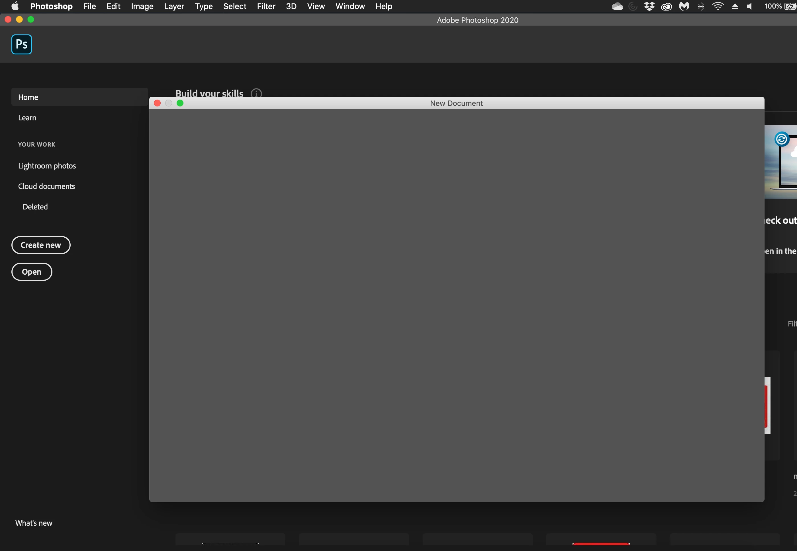 Can't create new file in Photoshop (Grey Window) in Photoshop 21.0.2