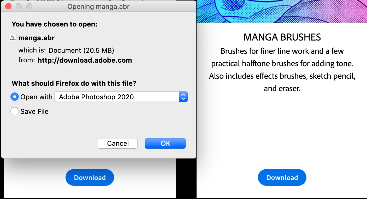 I hit the button on the website to download the manga brush set and it won't download. only the winter brush set would download.