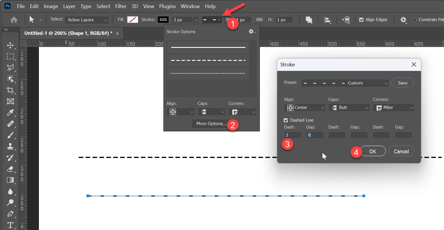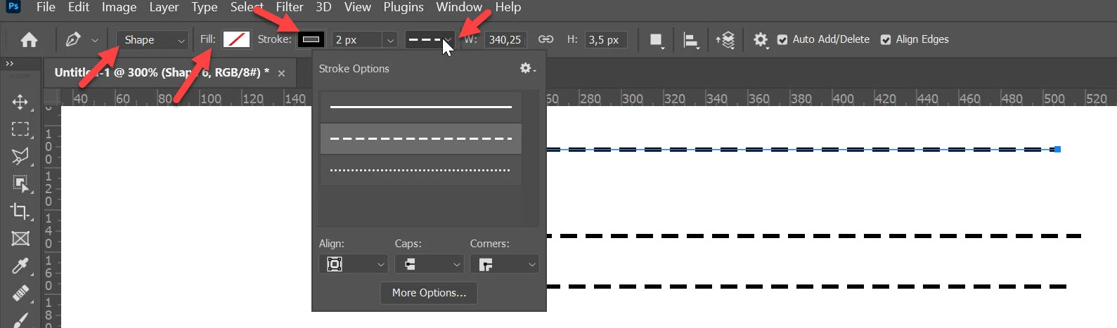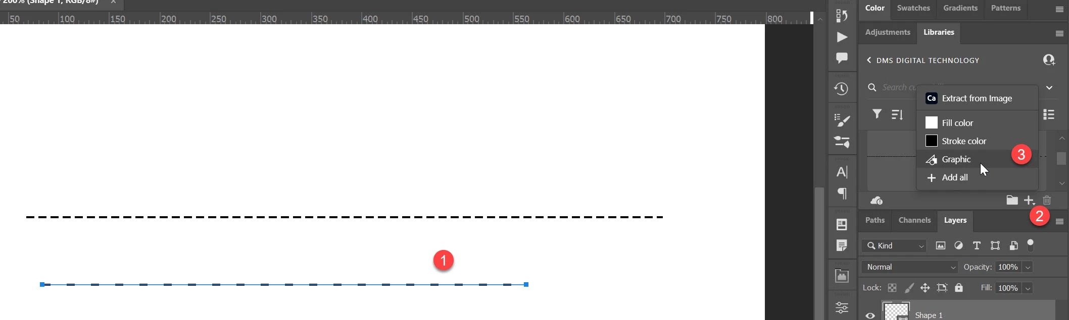 I'm trying to draw a simple 2 pixel hieght horizontal dashed line as a separator for a promotional graphic. Help insturcts me to use the line tool. I tried once and the dashed line was active until I saved the file and then it saved it as a solid line 😞