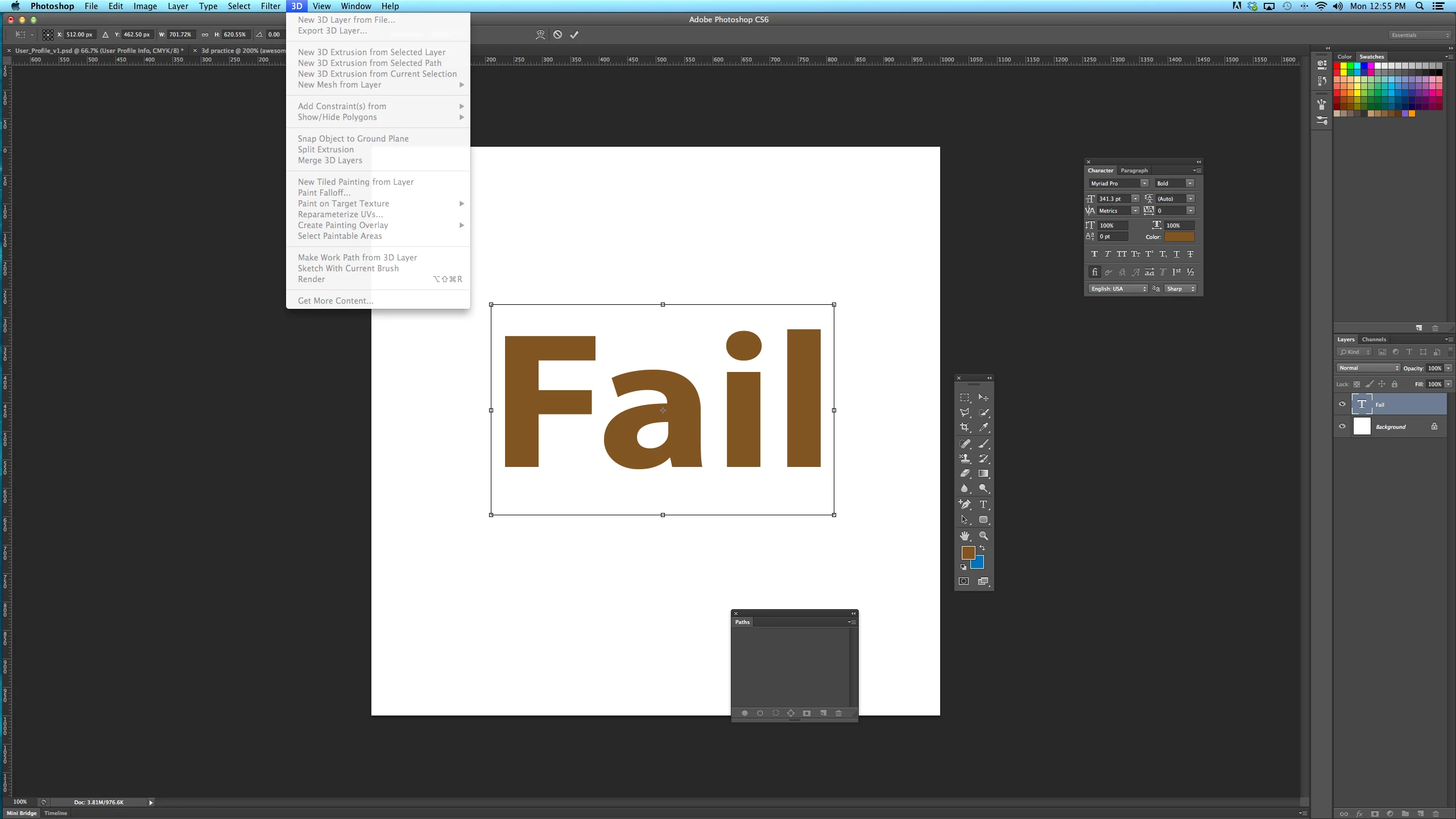 U should use first AI CS6 and then create a 3D design what u want to do, and make a save with PSD. U can get better one. GL