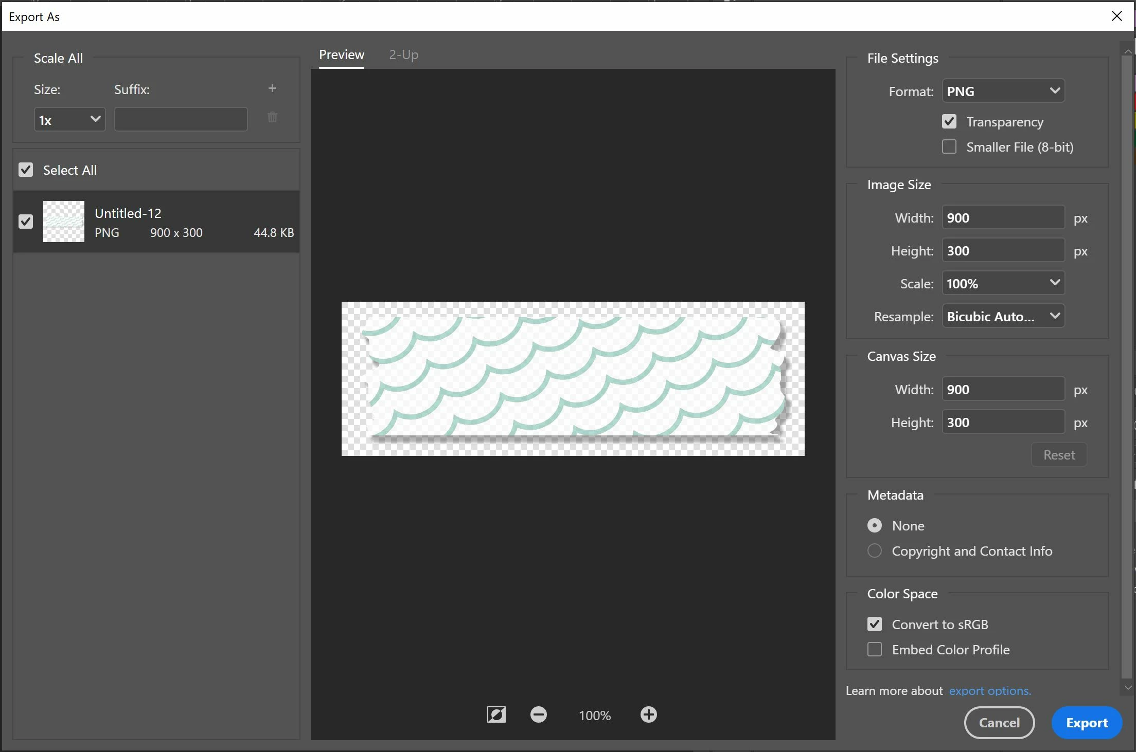I'm trying to create digital tape with pattern overlays and then export to a PNG in Photoshop. This digital tape has a lower opacity and a transparent background. However, anytime I try to export as a PNG a white background is added. The transparency box is checked in the export settings and the background for the artboard is transparent. It looks transparent in the export screen but never actually exports with the transparent background. I've searched for a solution but haven't found anything that works.