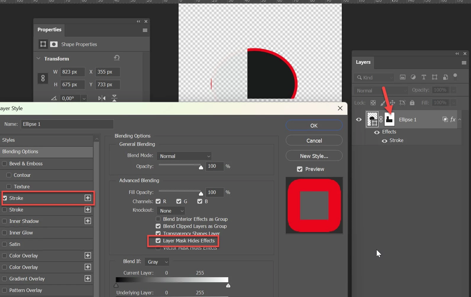 For the past few hours I've been trying to figure out how to cut out a specific shape (in this case created with the Curvature Pen Tool) from a larger shape behind it. The "Combine Shapes" option in the Layers dropdown is also greyed out. Ideally, I would also like to know how to create a stroke around the hole that I cut out of the larger shape. I just can't figure out how masking is helpful here. Any tips?