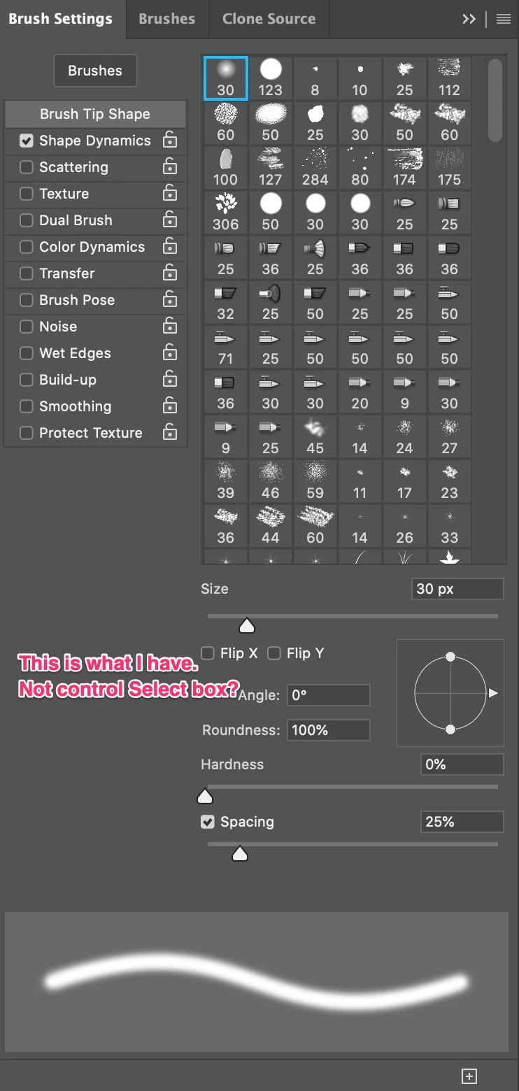 Nevermind, I figured it out. In addition to checking the Shape Dynamics checkbox, you need to click the Shape Dynamics row to show the options for that Brush Tip Shape option.