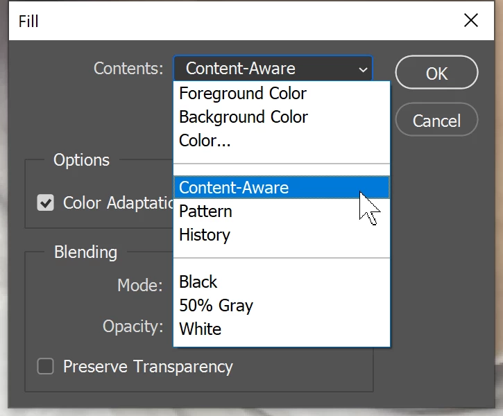Make sure the fill dialog says Content Aware and not one of the other choices.