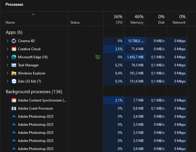 Even after uninstalling both versions, cleaning with Adobe Creative Cloud Cleaner Tool, and restarting my computer multiple times, the issue persists. When I click the Photoshop icon, it appears in Task Manager (Background processes tab) but no splash screen or UI ever shows up.