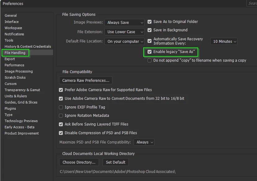 Can't save a copy as .JPG after update