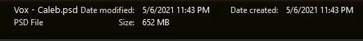 The file size in Windows File Explorer is at 652mb atm: Also don't have any smart objects here, all raster layers, and nothing is more than a few pixels outside the composition. So I have no clue why it's jumped up to 2gb all of a sudden.
