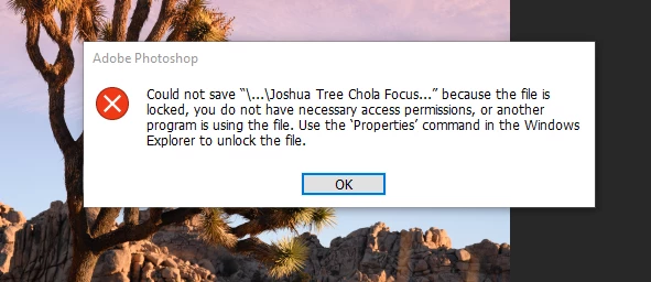 Can't save file in Photoshop because file is locked