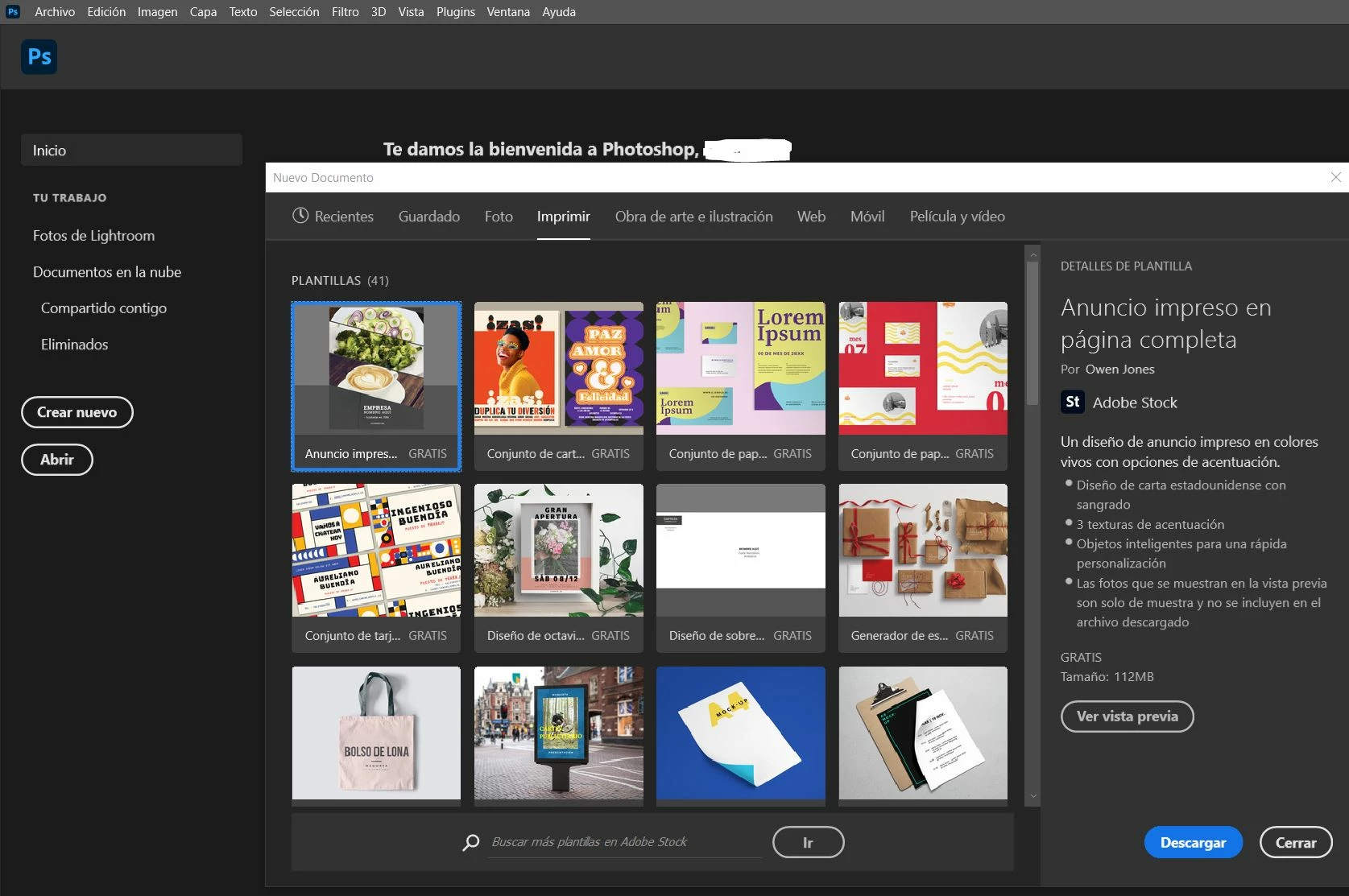 Hi there! When you create a new document, there's a window with few tabs, por example inside Print you can find Tabloid, Letter, etc. But I can't see nothing! 😞 There's only online/downloadable mockups, please help!