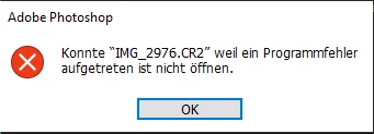Still, This error is showing up when I try to open a CR2 (Canon 5d Mark II) in Photoshop.